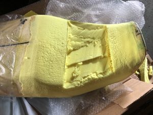 シートも少しヘタっていたのでシート皮を張替え♪ついでに3センチのアンコ抜き加工をいれておきましょう。
