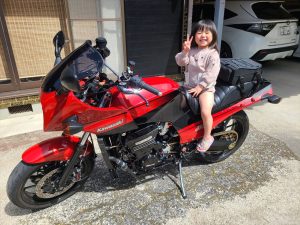 バイクを見ると乗りたいとうるさいので愛子二人のフォト♪