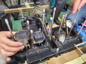 カムテンショナーガイドを交換する同時にピストンリング、ヘッドガスケット、パッキン、Oリング、ベアリングなどを同時交換します