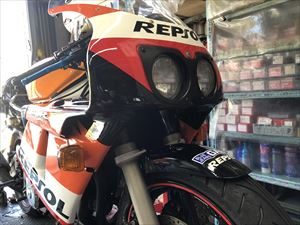 全オーナーさん情報ではレースで使用していた様なので、当然転倒による傷、カウルの割各部ステーの曲がりなどが、結構多くなかなか手のかかるCBRであります^^: